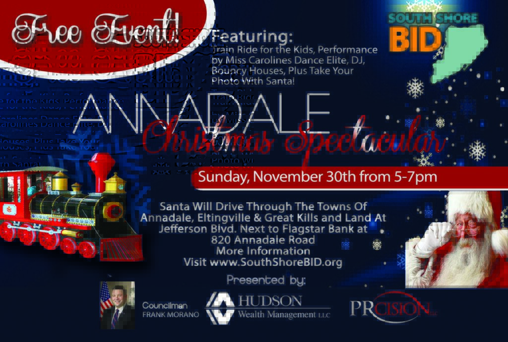 The Event Will Take Place on Sunday, November 30th from 5pm-7pm on Jefferson Blvd located next to Flagstar Bank (820 Annadale Road). Please note that due to construction in Annadale park our traditional tree lighting will not take place.